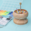 Simply fill the bowl half-way with beads and insert a hooked wire or threading needle, hold the hook just over the beads and spin the bowl. The beads will jump onto the wire or needle and you can push these along before adding more.
